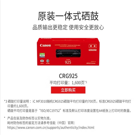 耗材型號(hào)  :   CRG925